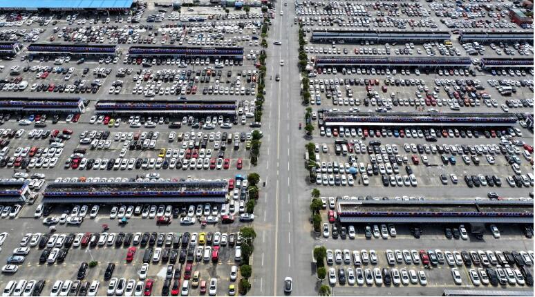 7月14日在山东枣庄二手车交易中心拍摄的待销售二手车(无人机照片)。新华社发(孙中喆摄)