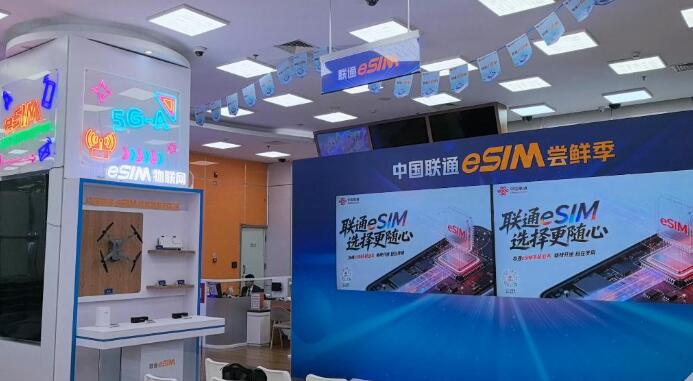 中国联通北京西单营业厅内的eSIM业务展示。(中国联通供图)