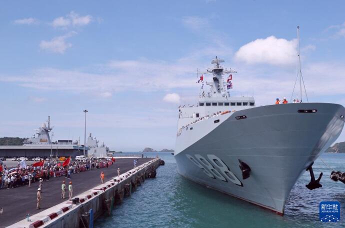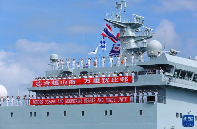 10月16日,沂蒙山舰抵达泰国梭桃邑港。新华社记者 孙玮彤 摄