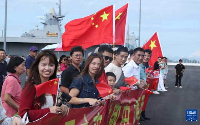 10月16日,民众在泰国梭桃邑港欢迎海军83舰编队。新华社记者 孙玮彤 摄