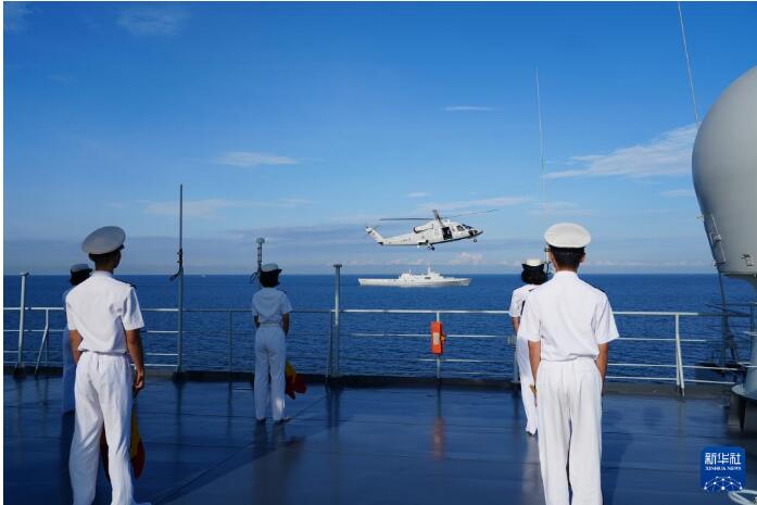 仪式后,欢迎队伍登舰参观,由83舰编队官兵组成的仪仗队,在戚继光舰飞行甲板接受中国驻泰国大使张建卫检阅。官兵精神抖擞,展现了中国海军的良好形象。