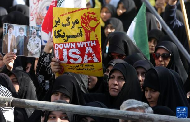 11月4日,民众手持反美标语在伊朗首都德黑兰参加反美反以集会。新华社发