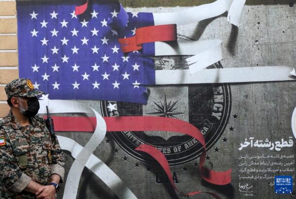 11月4日,在伊朗首都德黑兰举行的集会上,安全人员站在反美宣传画前。新华社发