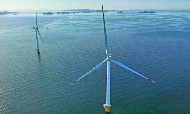 2023年9月13日拍摄的大连庄河海上风电项目(无人机照片)。新华社记者 杨青 摄