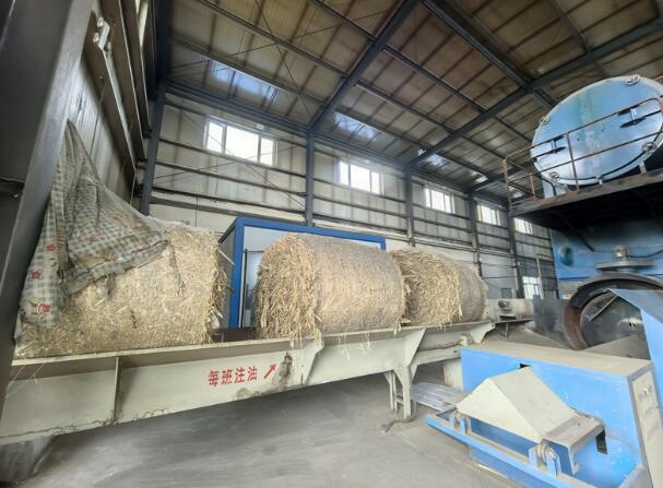 2025年7月25日在辽宁省阜新蒙古族自治县查干哈达村附近一家生物质燃料供热企业内拍摄的秸秆包。新华社记者 武江民 摄