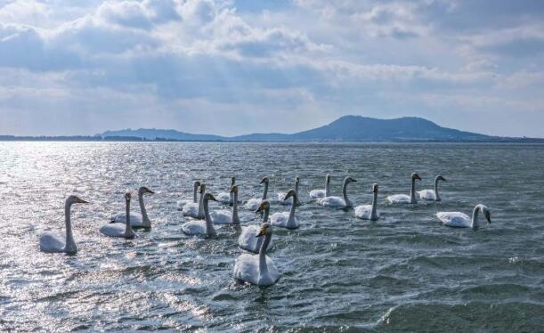 在威海荣成天鹅湖畔,大天鹅如雪白的精灵,与碧海蓝天构成和谐画卷。作为鸟类南迁北移的重要中转站,荣成是亚洲最大的大天鹅越冬栖息地之一,每年有成千上万只大天鹅从西伯利亚等地来此越冬。成群结队的大天鹅在湖面上游弋,场面蔚为壮观。