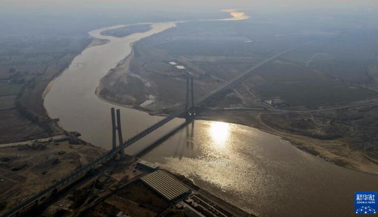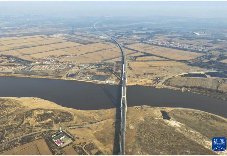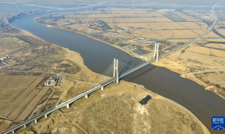 12月22日拍摄的包银高铁乌海黄河特大桥(无人机照片)。