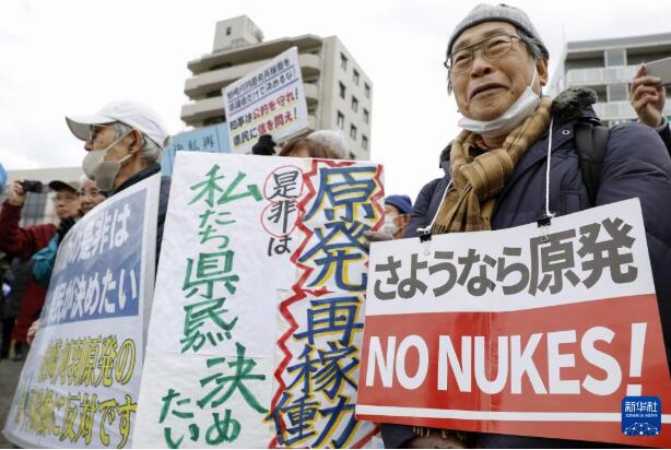 12月22日,民众在日本新潟县抗议重启柏崎刈羽核电站。新华社/共同社