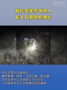 新华社安卡拉/突尼斯12月23日电(记者熊思浩 周昊瑾)利比亚军队总参谋长穆罕默德·阿里·艾哈迈德·哈达德23日结束对土耳其的正式访问后,于回国途中在土耳其境内坠机遇难。
