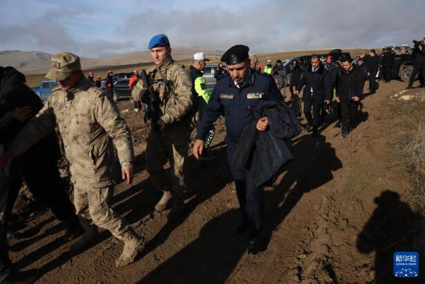 12月24日,利比亚军事代表团抵达在土耳其安卡拉省哈伊马纳区一座村庄附近的坠机现场。新华社发(穆斯塔法·卡亚摄)