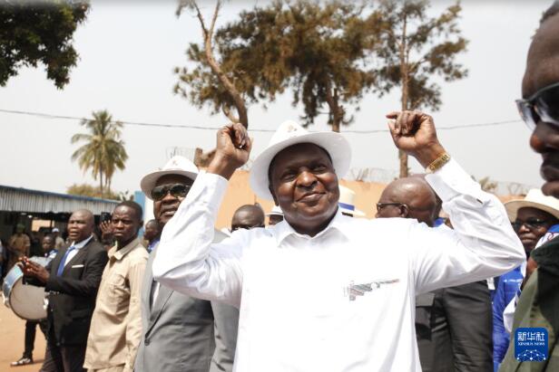 1月19日,在中非共和国首都班吉,中非共和国总统图瓦德拉在总统选举最终结果公布后向公众致意。 中非共和国宪法委员会1月19日公布总统选举最终结果,现任总统图瓦德拉成功赢得连任。 新华社发