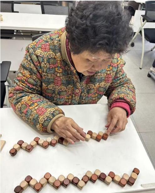 2025年9月,在杭州老年活动中心,老人们正在上益智木玩课。丽水乐龄文化创意有限公司供图