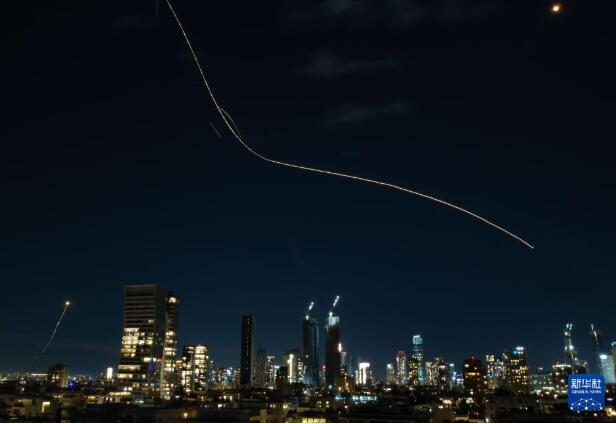 3月1日,在以色列特拉维夫上空,以军防空系统发射拦截弹后留下光轨。 当晚,以色列特拉维夫再次遭到来自伊朗导弹的袭击。 新华社记者 陈君清 摄
