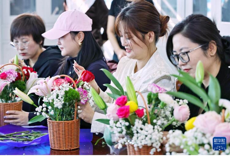 3月6日,妇女们参加黑龙江省同江市兴华街道繁华社区举办的插花艺术比赛。 近日,多地开展丰富多彩的活动,喜迎“三八”国际妇女节。 新华社发(刘万平摄)