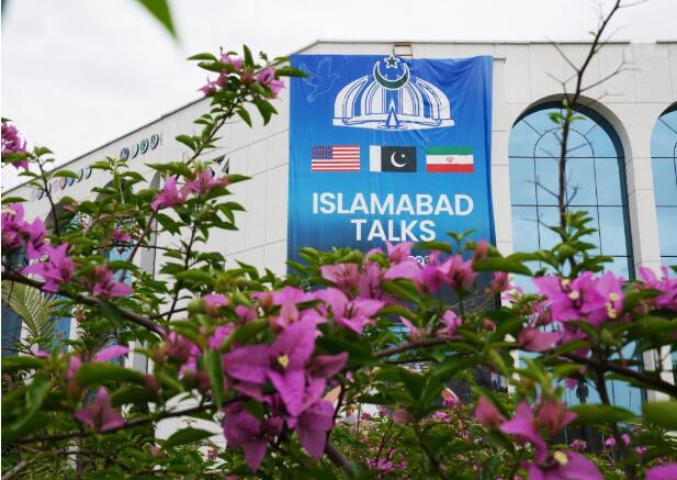 这是4月11日在巴基斯坦伊斯兰堡拍摄的美伊谈判新闻中心外景。新华社发(王申摄)