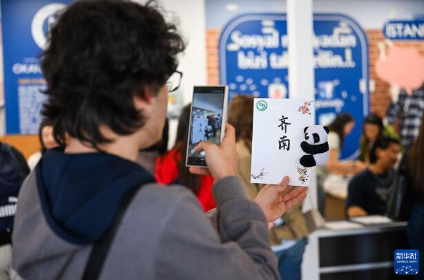 4月20日,在土耳其伊斯坦布尔奥坎大学,学生给自己的中文名字拍照。 当日是第七个“国际中文日”,土耳其伊斯坦布尔奥坎大学孔子学院举办丰富多彩的“国际中文日”活动,吸引不少大学生参与其中。 新华社记者 刘磊 摄
